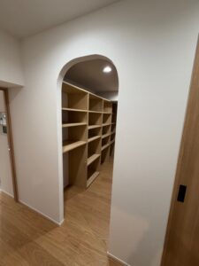入口はアーチ形したことにより温かみのある印象に。
